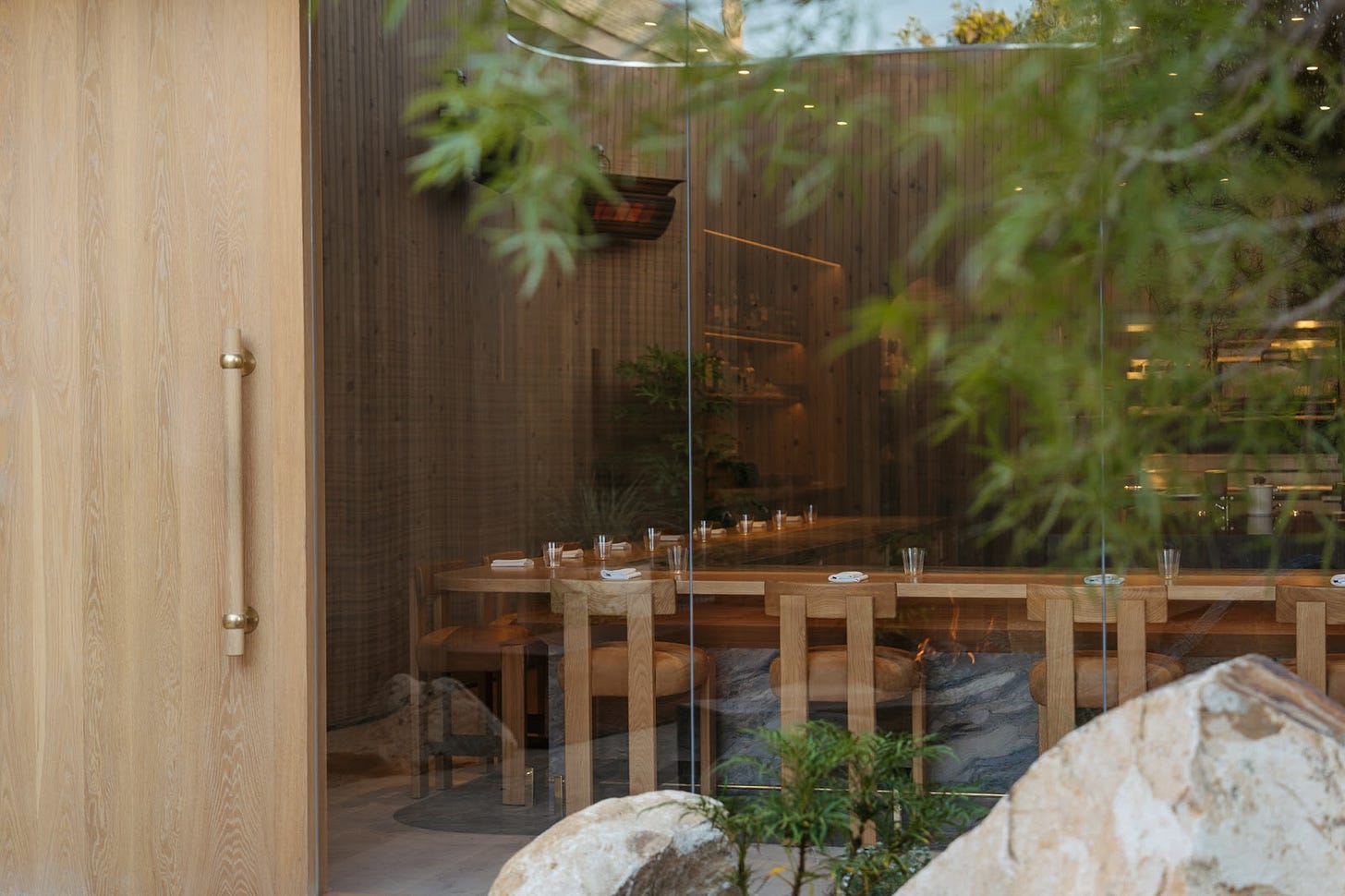 The Vibe: Start with welcome drinks and bite-sized snacks in a zen outdoor garden. Inside, 14 counter seats and two four-tops surround an open kitchen. Large jars of pickles and preserves line the shelves above wine glasses. Chefs serve guests, presenting plates with tableside flourishes, offering a precisely described narrative of the dishes’ preparations. You’ll end up back outside in the heated garden for mignardise and tea, with a natural, comfortable flow to the evening.