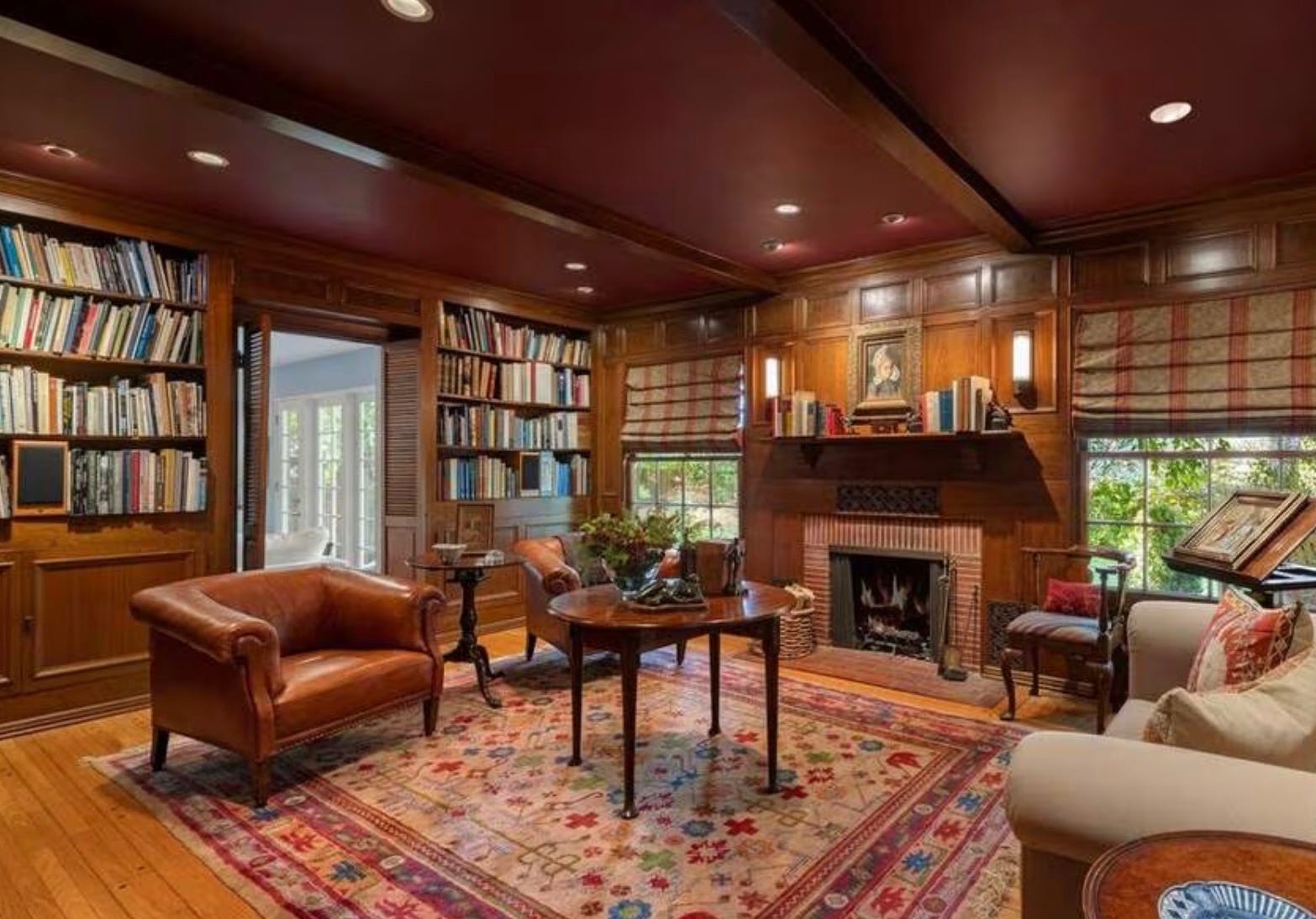 → 10339 Glenbarr Ave (Cheviot Hills, above) • 5BR/5BA, 4384 SF • Ask: $8.65M • traditional residence with wood-paneled library • Annual taxes: $55,920 • Days on market: 23 • Agents: Verna Helbling and Tomer Friedman, Christie’s.