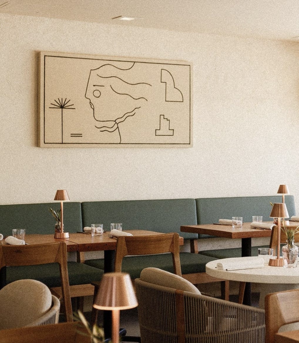 The Vibe: Serene and chic, but unbuttoned. The small dining room is framed by light wood and green accents, with curved chairs and understated, linear artwork throughout. Windows on both sides of the space look out onto the street and the motel’s expansive patio. For a more intimate experience, book the five-seat chef’s counter. Set in a separate room, it provides a good perch to watch the chefs work in a postage-stamp-sized kitchen. An outdoor patio is coming, but still in the works.