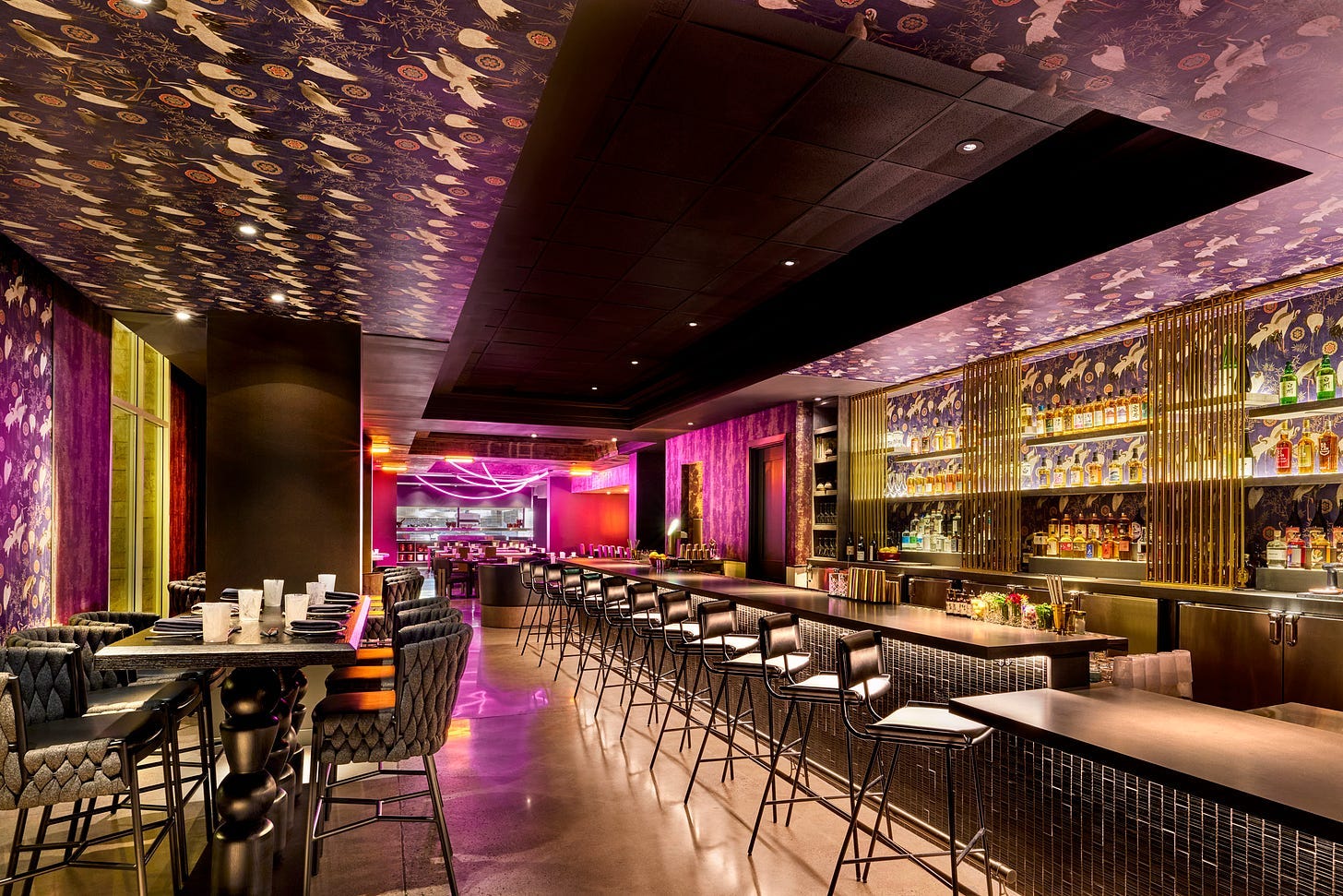 There’s a bit of a nightclub feel to the space, with graffiti-esque murals and neon rope lights, which, frankly, fits the mood at the sprawling resort. (The property has a bit of everything: kids screaming down a giant waterslide, almost four dozen pickleball courts, and a massive spa with an adults-only pool and turquoise massages.)