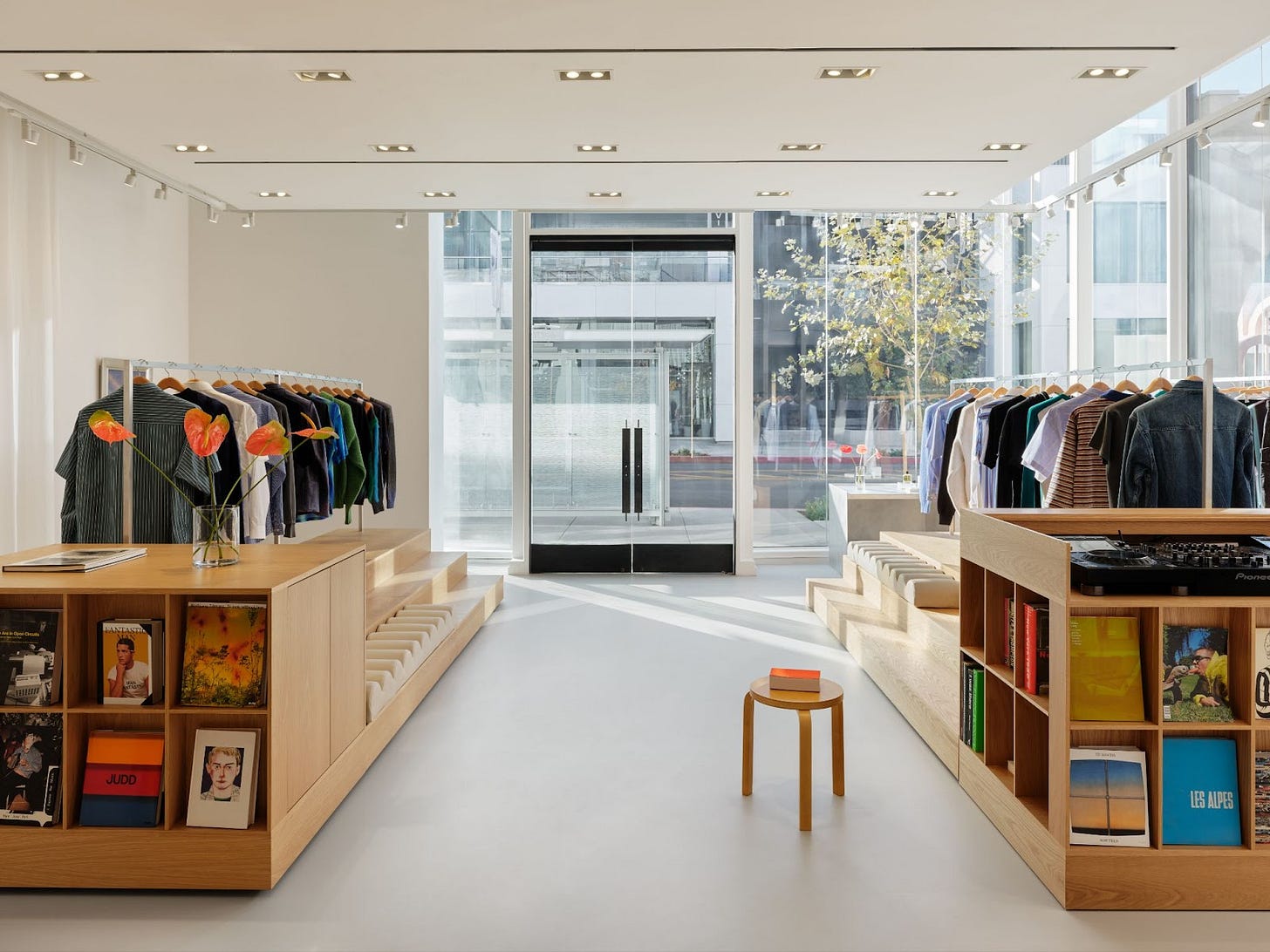 I almost missed the entrance to le PÈRE. Located near the behemoth outlets for Glossier and The Real Real on Melrose Avenue, the menswear store is refreshingly discreet behind its neat glass frontage. The unassuming structure belies the streetwear brand’s cult status and headline-making popup events.