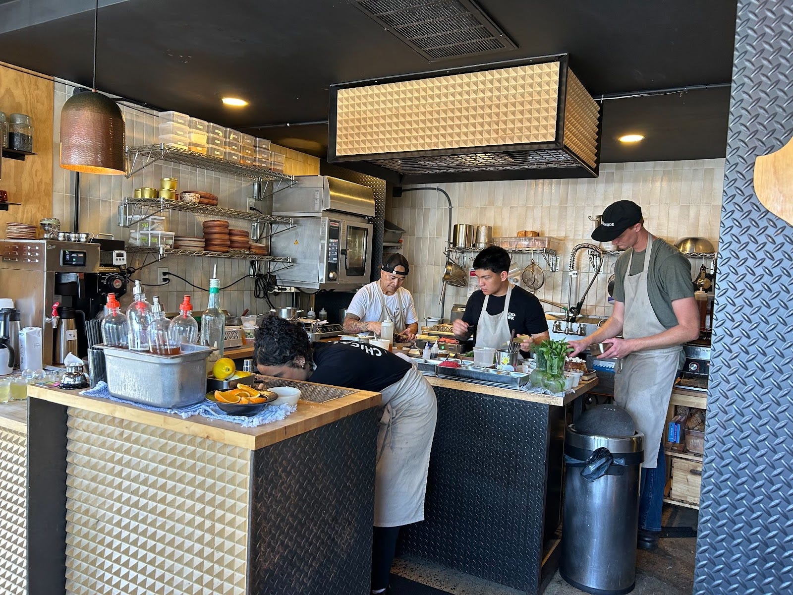 Menu options change weekly, but there are a few staples, including torrija French toast, a dreamy luxury, thick and rich. Turkish eggs are creamy, garlicky, and braced with a handful of fresh herbs. The coffee program, in partnership with Steady State Roasting, is strong, as is the inventive tonic menu.