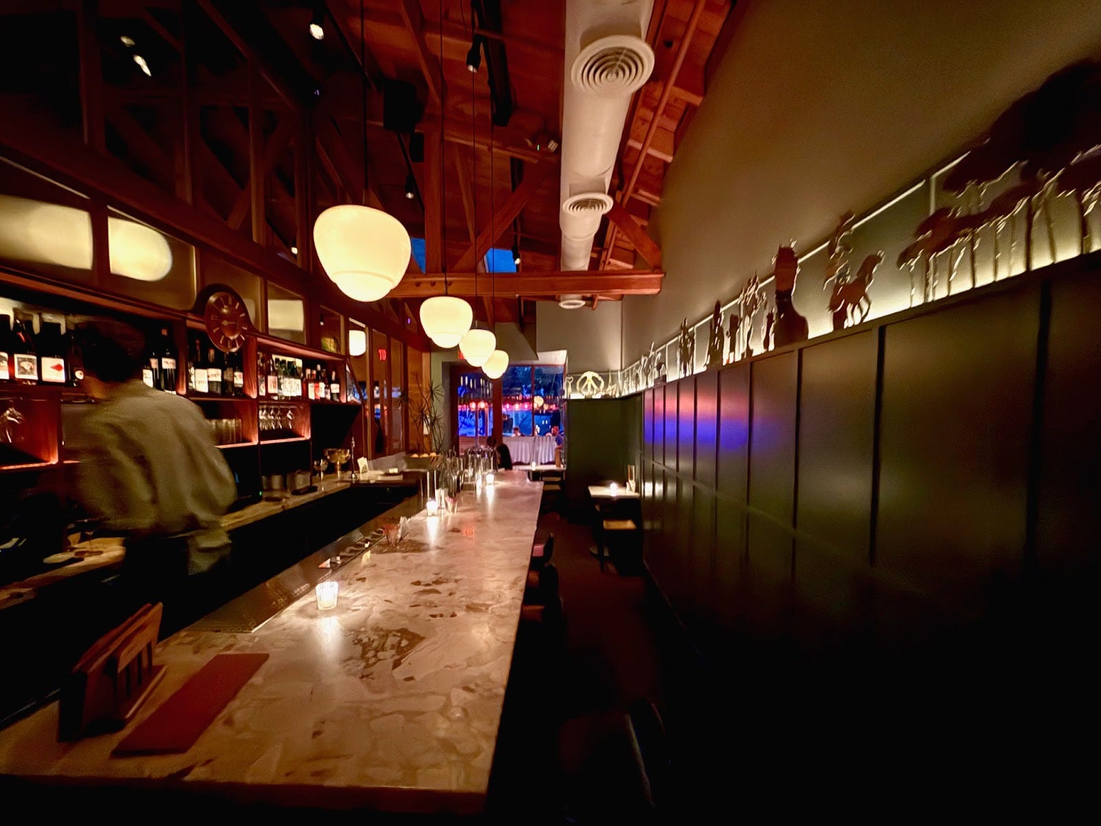 The Vibe: The entrance to Bar Bacetti is nearly indistinguishable from the entrance for Bacetti Trattoria, so don’t be thrown off if you enter through the wrong door (as I did). You’ll know you’re in the right place when you step into a long, narrow space with moody walls, a stunning marble-topped wooden bar, and lighting that makes everyone look good. If it’s not crowded, head for the cozy table tucked into the dimly lit alcove at the very back. Outside, the vibe shifts to sidewalk café, complete with classic bistro chairs and petite round tables.