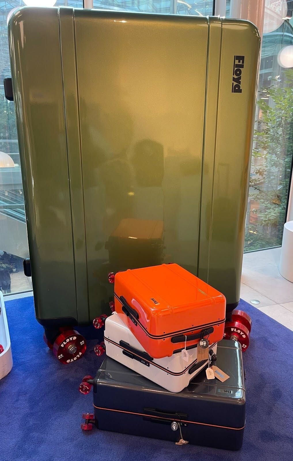 A new luggage brand out of Munich, Floyd offers colorful, well-engineered suitcases, each with signature orange wheels. The name was inspired by iconic rock band Pink Floyd, and the design by the scene in 1960s Venice Beach. The company offers a range of sizes and colors with conventional latch technology, as well as practical clothing and device compartments.