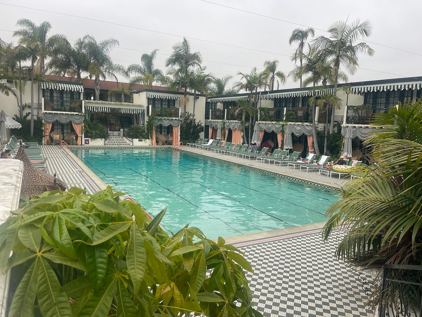 The Vibe: The designers stole a little from everywhere, but San Diego, SoCal chill is the dominant force. Artists, travelers, locals, and late-night adventurers mix under chandeliers and string lights, drawn by the eclectic energy and kind (yet intentionally unpolished) hospitality. The rooms, a nod to midcentury kitsch and clubby opulence, sport Soho House touches like record players, vinyl libraries, and Marshall Bluetooth speakers.