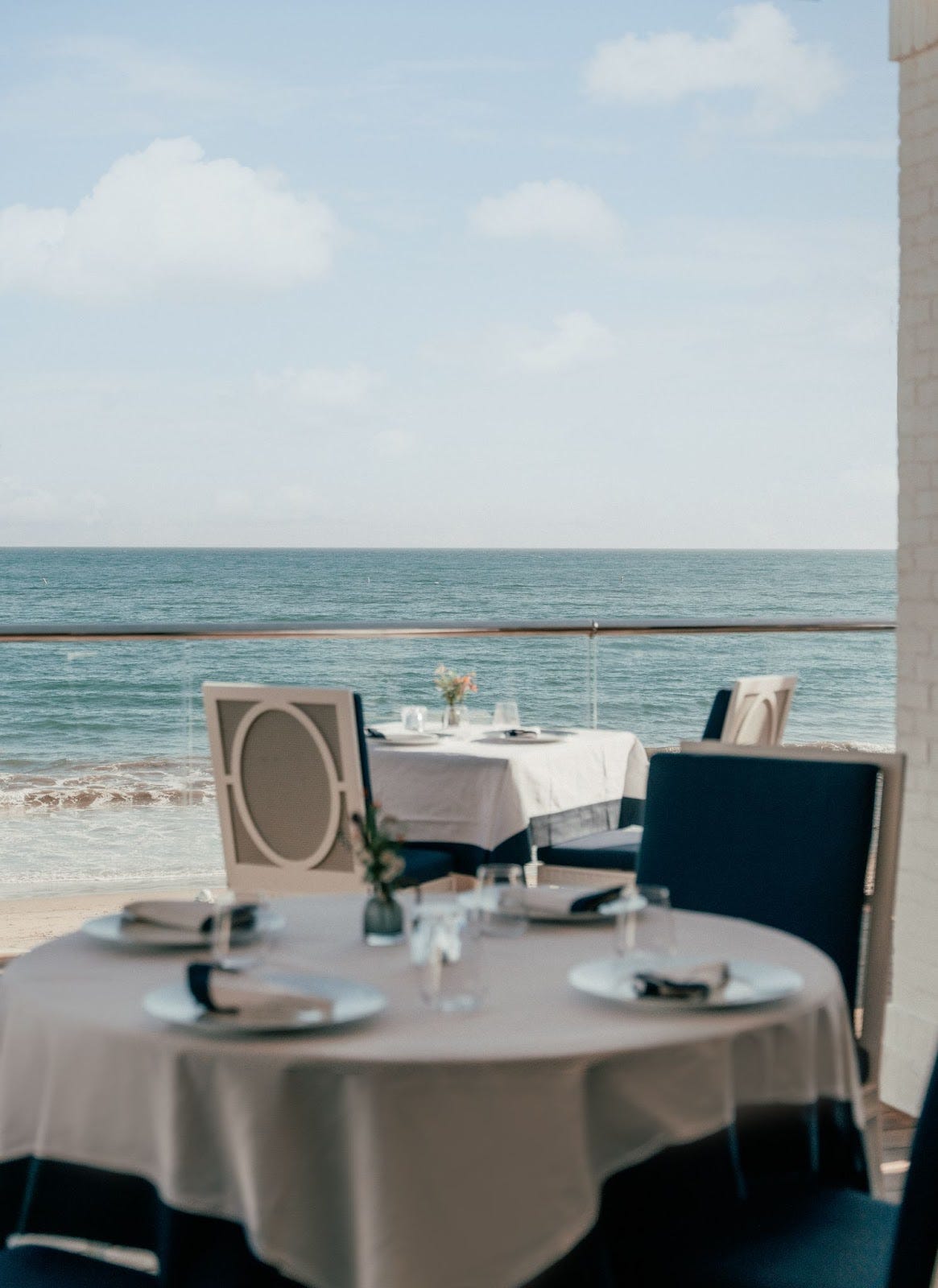 The best tables are undoubtedly on the terrace, which offers front-row seats to crashing waves and pink sunsets, while the dining room resembles the inside of a yacht — bedecked in navy blue and crisp white, with teak wood floors and leather booths. Despite a dress code (strictly elegant) and Caruso’s corresponding top-tier service, a warm and inviting atmosphere persists.