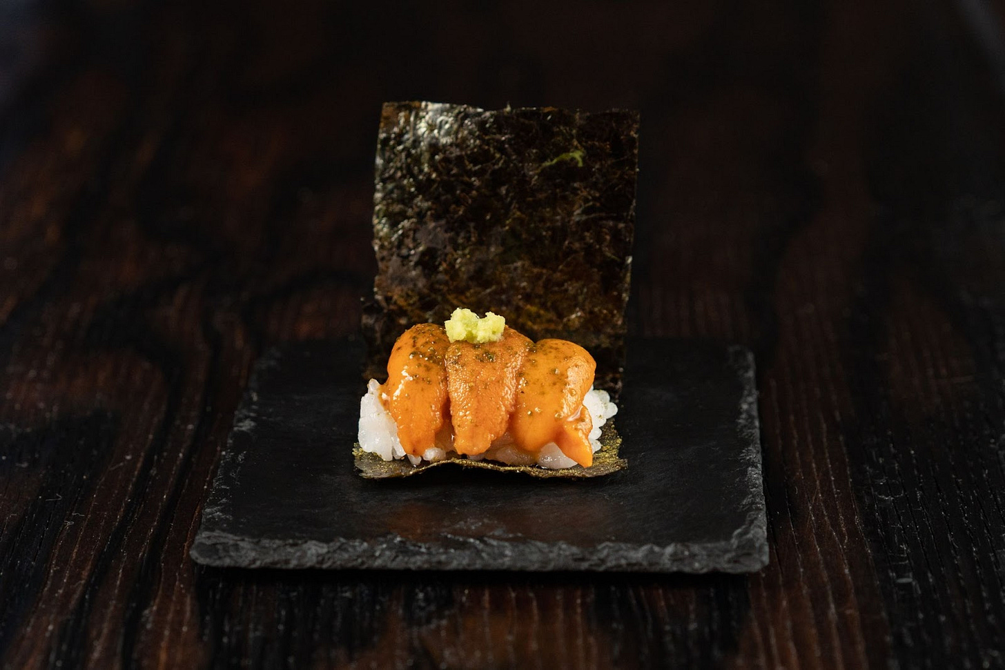 The Food: A 17-course nigiri menu ($185 per) includes a scallion-topped crispy nori cannoli stuffed with bluefin tuna, and the much-talked-about hamachi with sweet corn pudding and sourdough breadcrumbs — a perfect example of the chef’s precise, creative, and slightly mischievous style. Kinmedai (golden-eyed snapper) with yuzu miso gel and lemon zest also stands out. Drink options include Japanese whisky cocktails, beer, wine, and sake pairings.