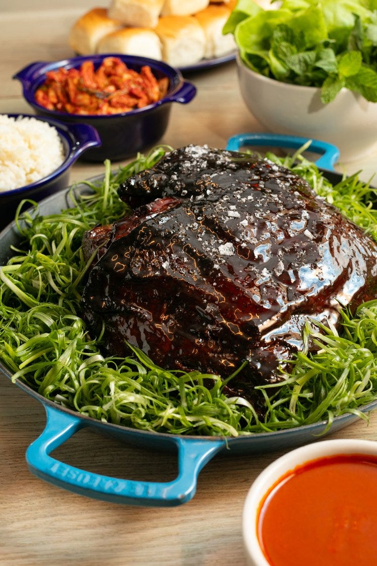 Moo’s Craft Barbecue (Lincoln Heights), party trays with brisket, ribs, sausage, and sides, order