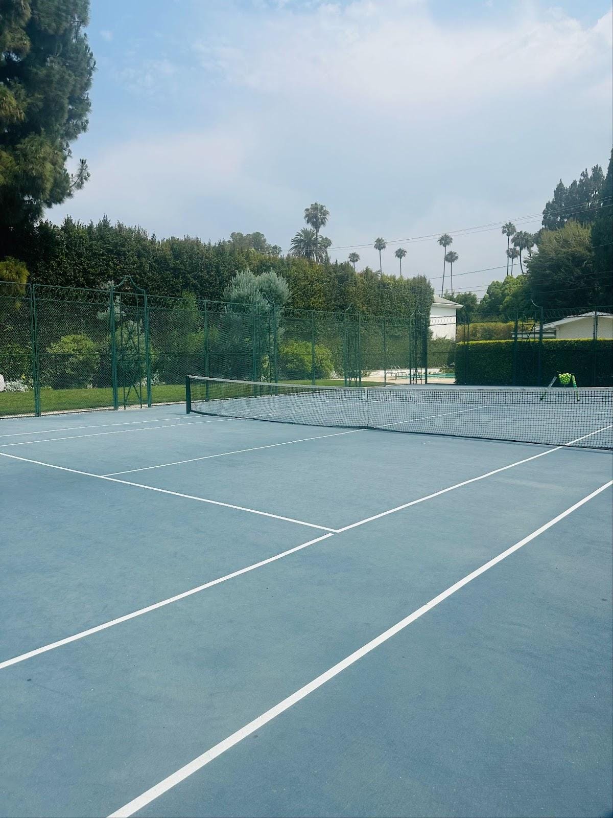→ THE COURT: A private court (above) nestled in the folds of Beverly Hills' most prestigious streets, surrounded by swaying palms.